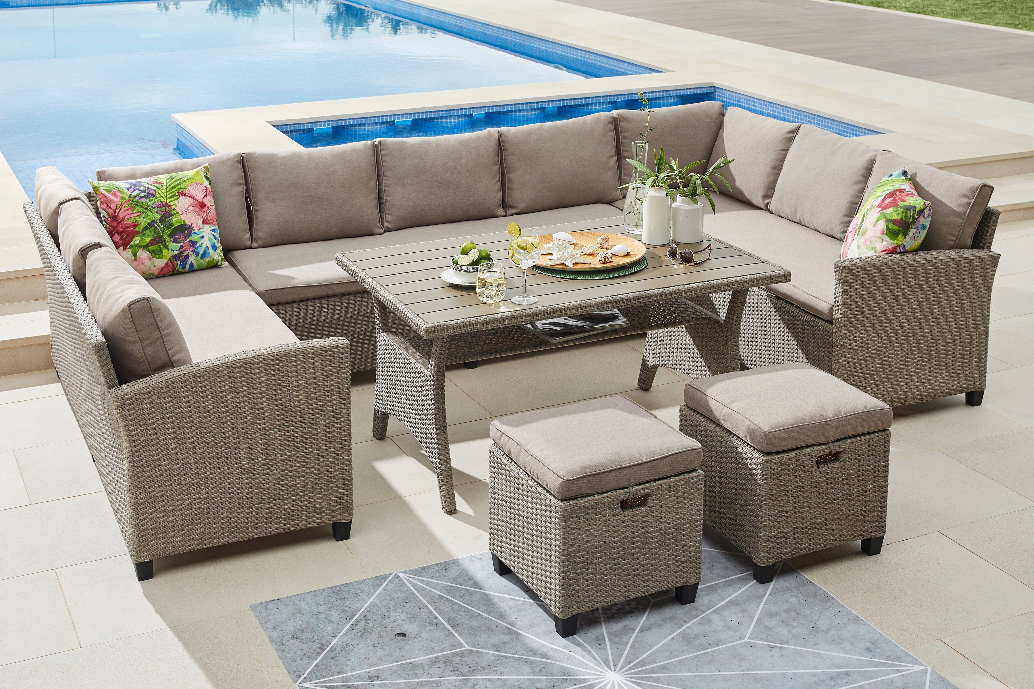 Gartenmöbel set lounge preise vergleichen und günstig kaufen bei idealo.de 457 produkte große auswahl an marken bewertungen & testberichte. Alternativ können auch hocker in die sitzgruppe integriert werden. Lounge möbel loungemöbel garten lounge holz paletten. Polyrattan erlaubt es, dass die rattan lounge günstig verkauft werden. Artlife polyrattan lounge sitzgarnitur santa catalina beigegrau mit dunkelgrauen bezügen. Lounge garnituren bieten dabei die ideale gelegenheit, sich ein stilvolles ambiente mitten in der natur zu schaffen. Denn gartenmöbel aus holz sind schick, aber es entstehen sehr. Es gibt einfach gute gründe, warum loungemöbel selten aus holz oder metall angefertigt werden. Und das besondere eben ist, dass auch die spezielle maßgeschneiderte abänderung des möbels super geklappt hat. Möbel aus rattan sind sehr beliebt im bereich der gartenmöbel. Loungemöbel zaubern urlaubsfeeling in deinen garten, auf deine terrasse oder den balkon. Ob balkon, garten oder terrasse unsere verschiedenen rattan lounge garnituren sind gemütlich und passen zu unterschiedlichstem raumangebot. Gosse auswahl an wetterfesten outdoor lounges gratis lieferung rückgaberecht tiefpreisgarantie.